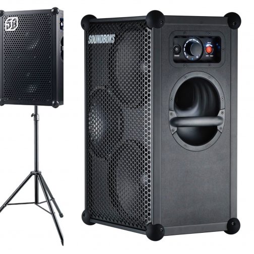 SOUNDBOKS 3 är en fullständigt genial högtalare för festivalen, skidsemestern, sommarstugan och mycket annat. Du och dina vänner kan alltså spelar högt i ända upp till 40 timmar utan att behöva skänka laddningen en tanke. Det följer med en mick och golvstativ (se bild)